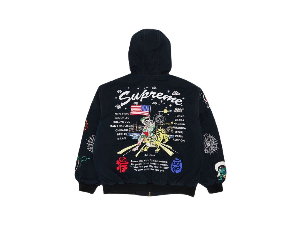 Supreme AOI Hooded Work Jacket Black je ikonická bunda, která zaujme svým jedinečným designem. Tento kousek je ideální volbou pro ty, kteří hledají něco výjimečného.